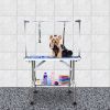 This grooming table is great for your pet dog or cat. It will raise the height of your pet so that you can reach him easily for bathing, trimming, drying, grooming or other things you want to do. Our product is fine designed and the table is ribbed rubber surfaced which can ensure the safety for your baby petsWhether for washing, trimming their fur/hair or getting them into tip-top shape, this grooming table provides you everything you need for your pet grooming needs. Made from metal, the frame is crafted into a large adjustable design which handles up to 220LBS in weight, making it suitable many dogs of different sizes, with a large non-slip rubber tabletop from them to stand comfortably over long periods of time.• ADJUSTABLE ARM'S HEIGHT: Allows you to trim, groom, bath and groom your dog at a height which suits you and your dog.• METAL FRAME: A solid, sturdy and durable addition for ongoing reliability, stainless steel legs, stainless steel arms, and aluminium frame of board.• NON-SLIP SURFACE: Rubber mat cover the board so your dog can feel comfortably for long periods of grooming time. SAFE: Rounded corners to prevent injury, with two slings loops to hold your dog in place when grooming.• BOTTOM MESH TRAY: Removable if not wanted, allows convenient access to grooming essentials. Open design prevents liquid build up. Tabletop: 76H x 107L x 60W cm. .