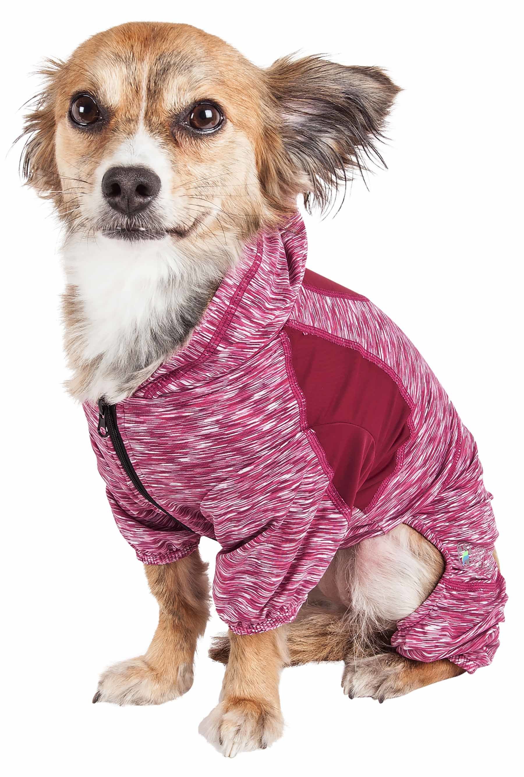 Home > Pet Life Active 'Downward Dog' Heathered Performance 4-Way Stretch Two-Toned Full Body Warm Up Hoodie