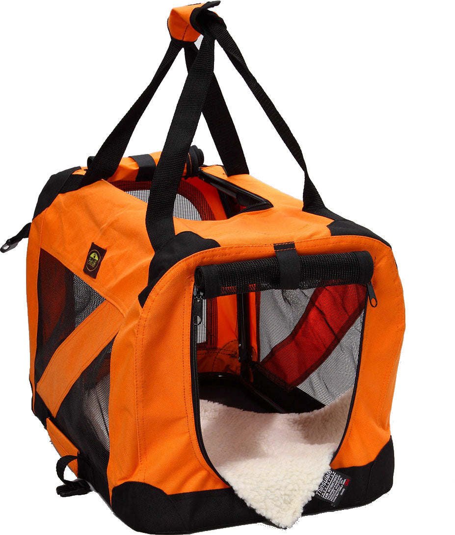 The Pet Life Folding Zippered 360° VISTA VIEW Collapsible Soft Folding Dog Crate Carrier Features a PVC Frame for Added Stability. This Pet Crate mechanically hinges closed and buckles in place. After Folded it can be easily transported around via the Incorporated Side Handle. This Dog Crate Contains Thinsulate Thermal Heat Retention Technology incorporated within the Scratch-Resistant Nylon/Sherpa Padding. Composed of Ballistic Nylon this Pet Crate is Built-To-Last. Included within the inside of the Pet Carrier is a Built-In Leash Holder for added Safety and Protection. Collapses to 4 inches narrow.