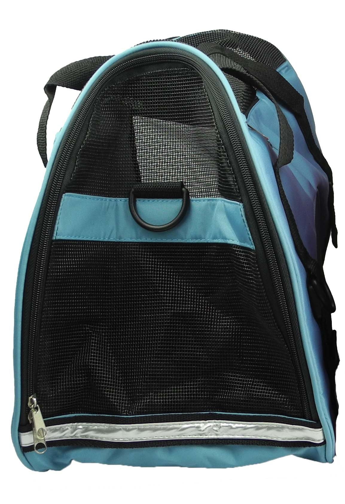 The Airline Approved Altitude Force Sporty Zippered Lightweight Fashion Travel Pet Carrier is composed of durable ballistic nylon with a heavy duty mesh surrounding for breathability and sun view. This Pet Carrier features built-in adjustable Double-Stitched over-the-shoulder straps and a built-in leash holder on the inside. This Dog Carrier is engineered to Zip, Fold and Collapses to 3 inches narrow and features a side Mesh entrance and dual sided zippered compartments. Available in multiple sizes and colors.
