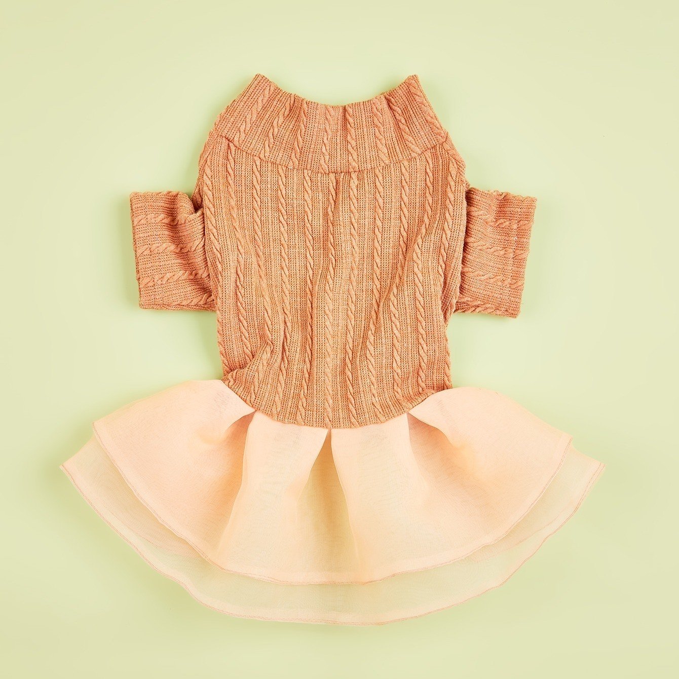 Home > Small & Medium Dogs Solid Color Twist Knit Turtleneck Spliced Mesh Skirt; warm Dog Sweater For Winter
