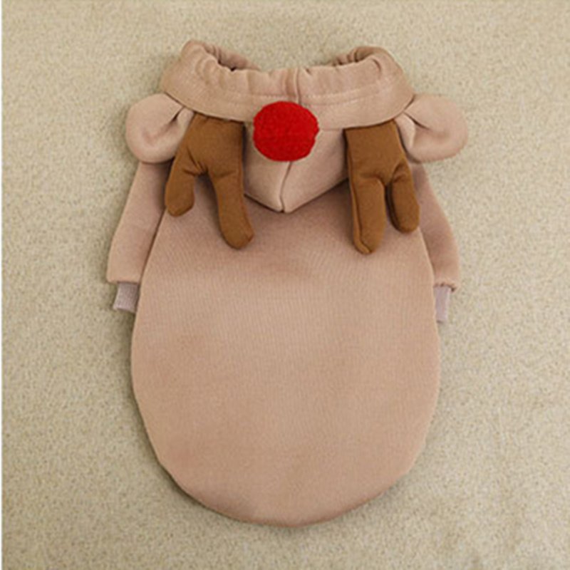 Warm Dog Sweater Christmas Elk Costume Drawstring Hooded Sweatshirt For Small & Medium Dogs